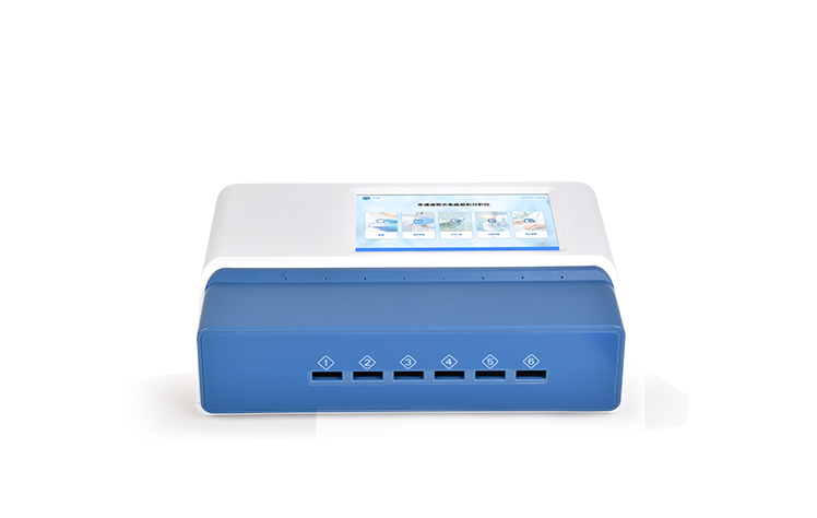 | 1、 7英寸电容式触摸屏,分辨率:1920:x:1200,内部存储:1+8GB | 2、 操作系统:Android:7.1 | 3、 检测方式:反射式光电适配卡壳:70mm*20mm | 4、 语言:中/英文: | 5、 存储数量:10万+ | 6、 准确性:误差值≤:5% | 7、 稳定性:SW(波动系数)≤5% | 8、 重复性:CV(变异系数)≤3% | 9、 分辨率:0.001 | 10、检测通道:6通道检测时间:<5秒(单卡及多联卡);可对样本进行胶体金定性/半定量检测。 | 11、数据传输:WiFi、蓝牙、USB、射频读卡、外置扫码模块(选配) | 12、数据处理:可通过通讯端口进行数据汇总、上传监管平台等 | 13、检测通道孵育检测一体,温度范围::室温:+5℃:~:60℃ | 14、打印机:热敏打印机(热敏打印纸:57*20mm) | 15、接口:USB接口:2个;USB-B接口:1个;LAN接口:1个:;DC电源接口:5.5/2.1mm | 16、电源:输入:AC100V-240V/1.3A 50Hz;输出:DC12V/5A | 17、使用环境:温度:0~50℃;湿度:0~90%: | 18、主机尺寸::308mm*205mm*91mm | 19、主机重量:约:2.7kg |